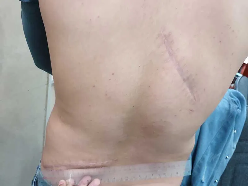Các bảo vệ có mặt lúc này đã can ngăn, đưa nạn nhân đi cấp cứu ở bệnh viện. Theo hồ sơ, anh Đới bị một vết chém dài 18 cm, thấu cột sống và một vết thương dài 15 cm, gây đứt cơ, mạch máu và sâu đến xương sườn.