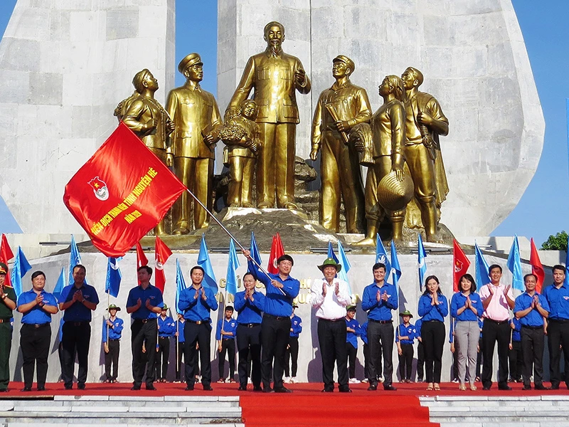 Phó Thủ tướng thường trực Trương Hòa Bình trao cờ lệnh phát động Lễ ra quân chiến dịch Thanh niên tình nguyện hè 2020 cho đoàn viên, thanh niên. Ảnh: TTXVN