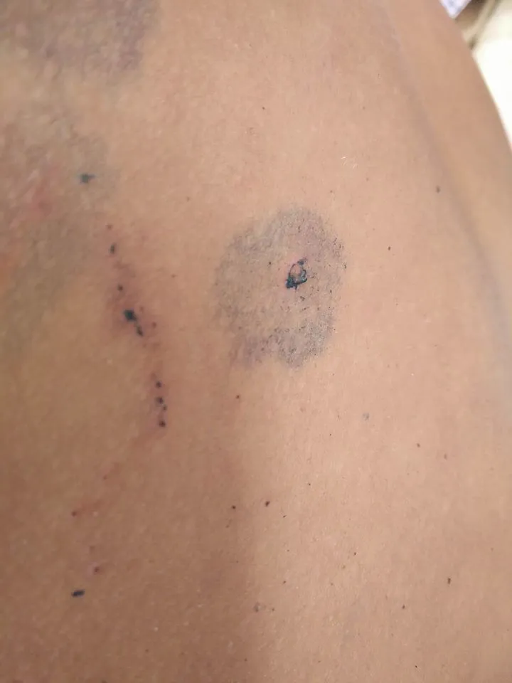 Những vết thương do đạn chì gây ra trên người anh A.