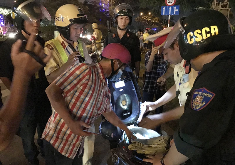 Khi bị yêu cầu đo nồng độ cồn, anh Bảo lảng đi xa và nói bỏ xe. Ảnh: L.THOA