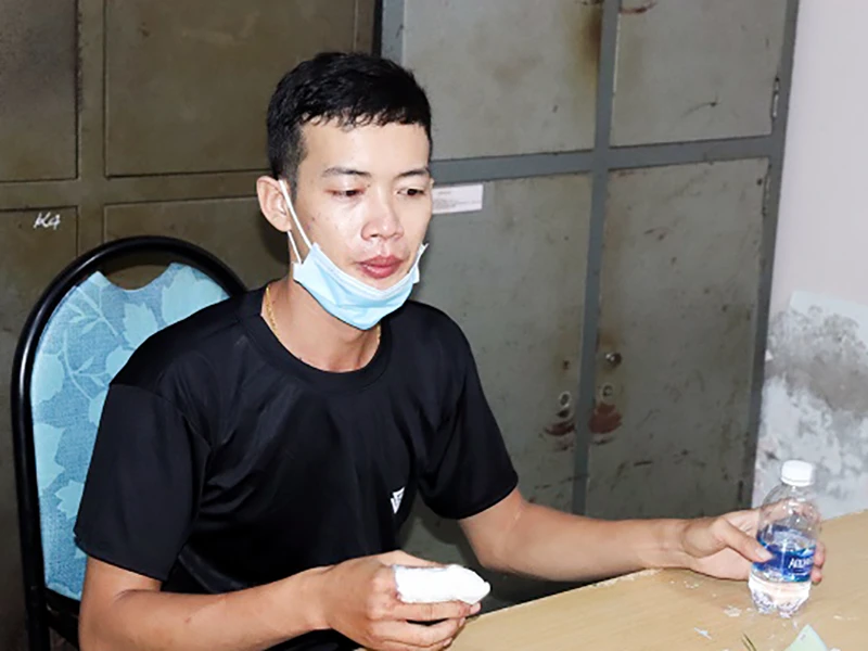 Nghi can Lý Văn Phương tại cơ quan công an. Ảnh: DIỄM HẰNG