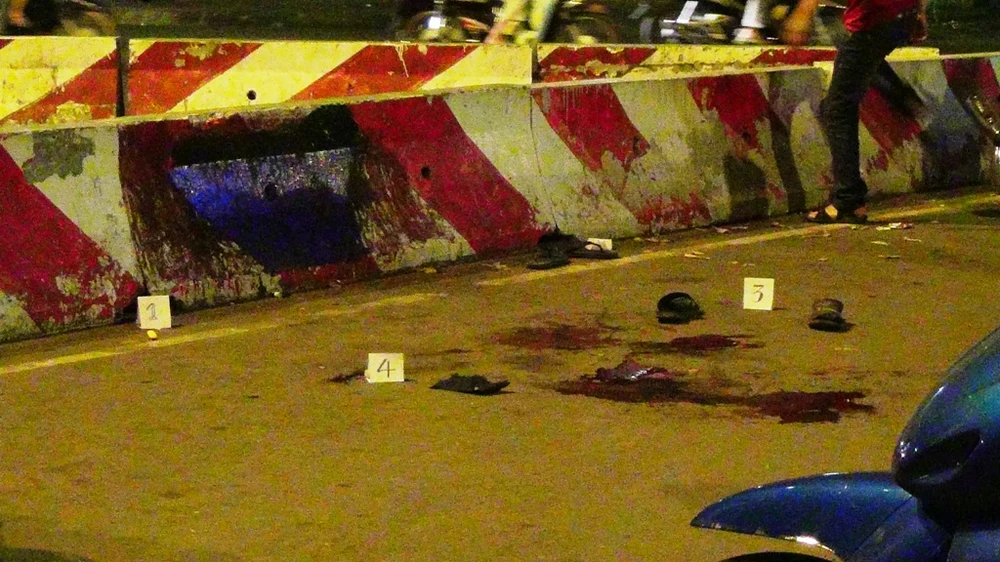 Tại hiện trường, cán bộ điều tra thu giữ một chuôi dao loại Thái Lan màu vàng, nhiều vệt máu loang lổ trên đường. Ngoài ra, còn hơn 20 hộp cơm chay từ thiện nạn nhân chưa phát hết nằm ngổn ngang.