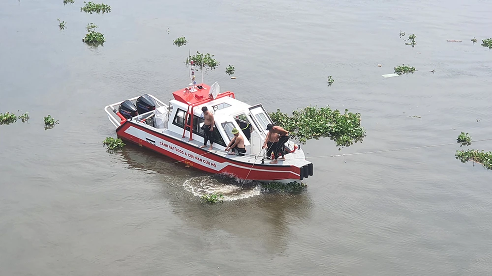 Nhận tin báo, lực lượng cứu hộ của PCCC TP.HCM phối hợp với Công an TP Thủ Đức đã có mặt tại hiện trường, triển khai tìm kiếm người mất tích.