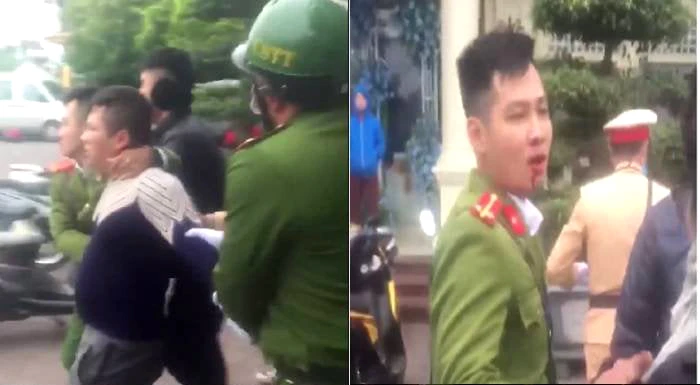 Nghĩa tiếp tục dùng tay đấm vào mặt trung úy Tùng làm vị cảnh sát này bị chảy máu mũi, rơi mũ. Tổ công tác đã khống chế Nghĩa đưa về trụ sở Công an phường Phan Bội Châu xử lý.