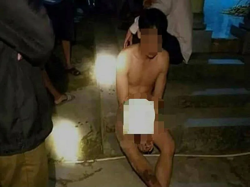 LVN khi bị người dân vây bắt. (Ảnh do người dân chụp lại)