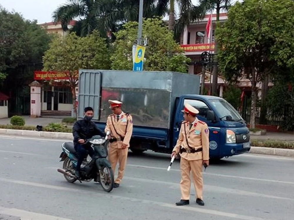 Thực kiện kế hoạch xử lý các lỗi vi phạm không đội MBH, dừng đỗ trái quy định và sử dụng điện thoại khi lái xe, Đội CSGT số 9 (Phòng CSGT, Công an TP Hà Nội) phân công tổ công tác lập chốt kiểm tra. Địa điểm là tuyến phố Tây Sơn, thị trấn Phùng (Đan Phượng, Hà Nội).