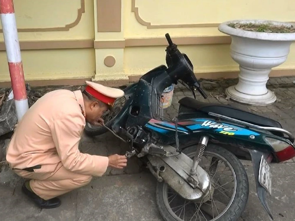 CSGT xác minh số khung, số máy của chiếc xe