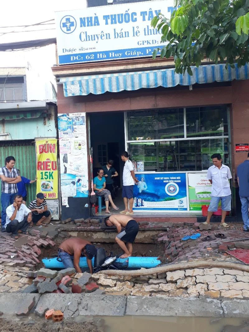 Theo một số người dân tại khu vực cho biết, khoảng 4 giờ sáng ngày 23-6 đường ống cấp nước trước địa chỉ nhà 62 Hà Huy Giáp bị bể khiến nước tràn ra đường lênh láng.