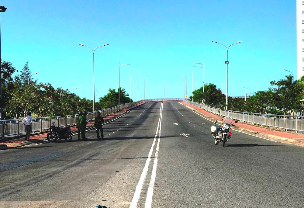 Cầu Thuận Phước bị phong tỏa gần một tiếng. Ảnh: HẢI HIẾU