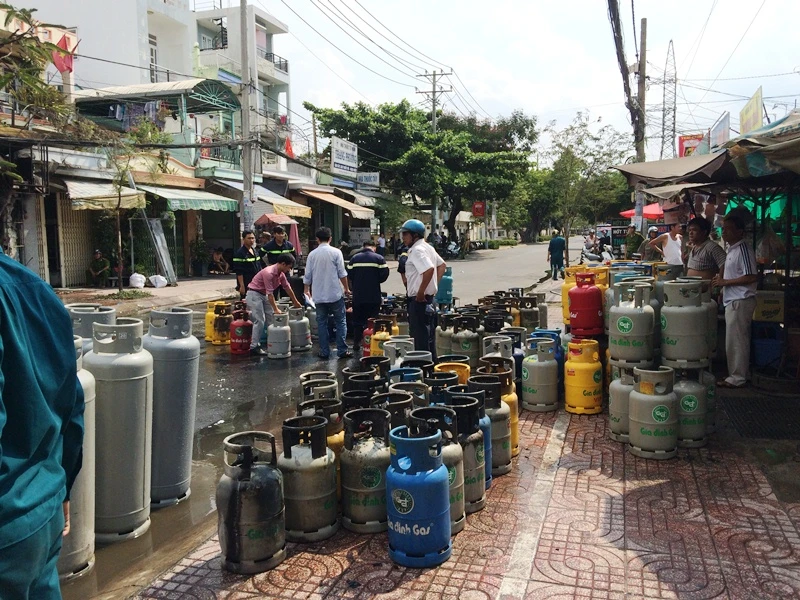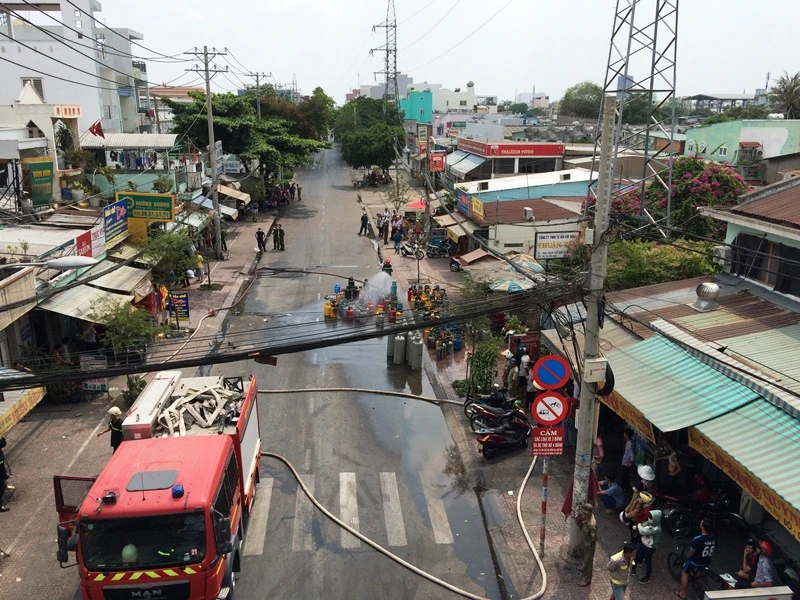 Một số người dân cùng lực lượng chức năng đã huy động các bình chữa cháy mini để khống chế lửa. Tuy nhiên chỉ khi lực lượng chữa cháy chuyên nghiệp có mặt thì đám cháy mới được dập tắt. Khoảng 100 bình gas các loại được di dời ra ngoài.