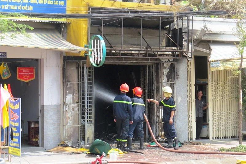 Lửa bén vào gas gây nổ và cháy dữ dội, người dân xung quanh khu vực hoảng loạn tháo chạy ra khỏi khu vực. Riêng thanh niên đã tử vong trong cửa hàng.