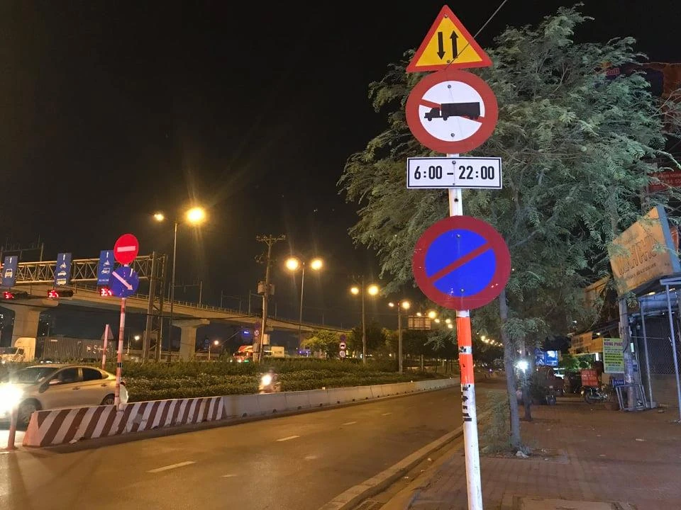 Chiếc xe này lưu thông vào phần đường có biển cấm xe đầu kéo Container từ 6 giờ đến 22 giờ theo hướng từ ngã tư Bình Thái đi Suối Tiên.