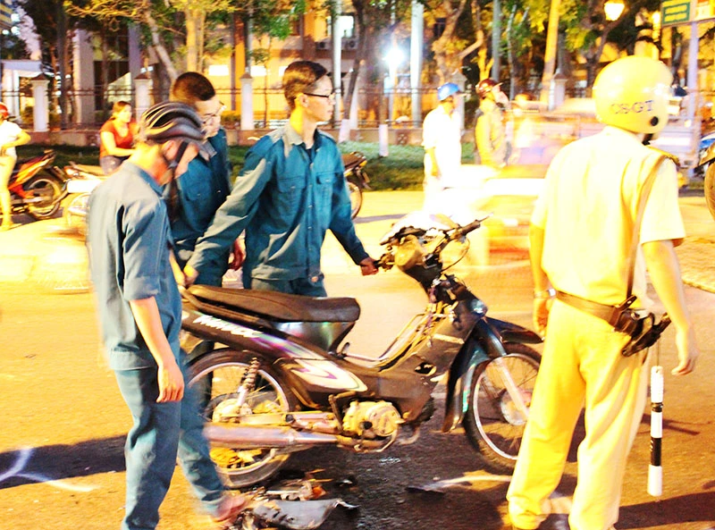 Chiếc xe máy của thanh niên phóng nhanh, gây tai nạn. Ảnh: LÊ THOA