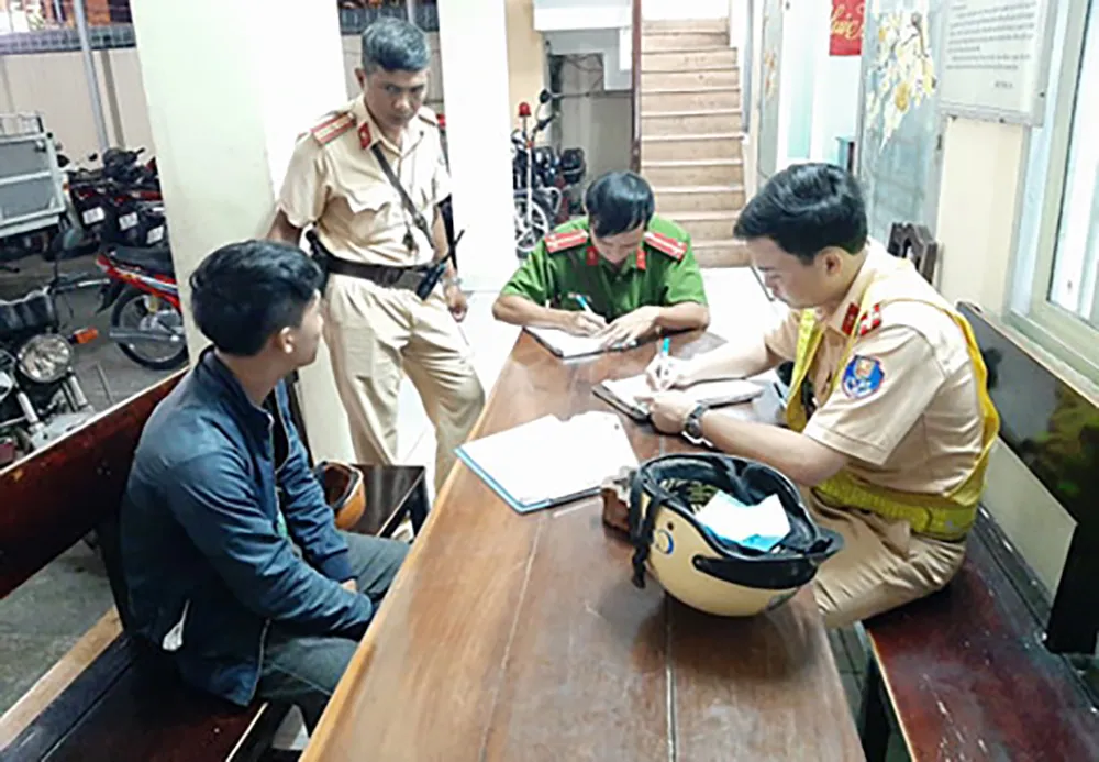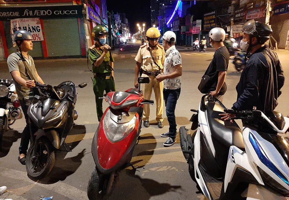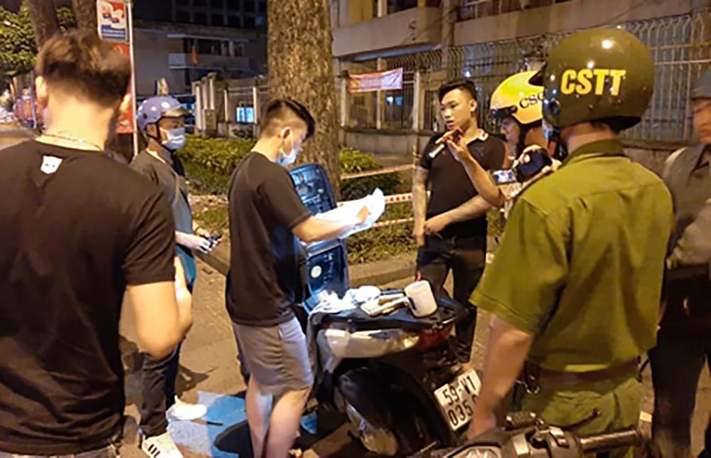 Khuya 17-7, tổ công tác thuộc Công an quận Bình Thạnh cũng phát hiện, lập biên bản vi phạm hành chính với nhiều thanh niên vi phạm các lỗi về giao thông như không đội nón bảo hiểm, vi phạm nồng độ cồn…