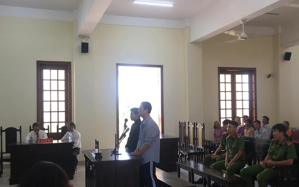 Hai bị cáo Sang và Phi nghe tòa phúc thẩm tuyên án ngày 26-7. Ảnh: NN