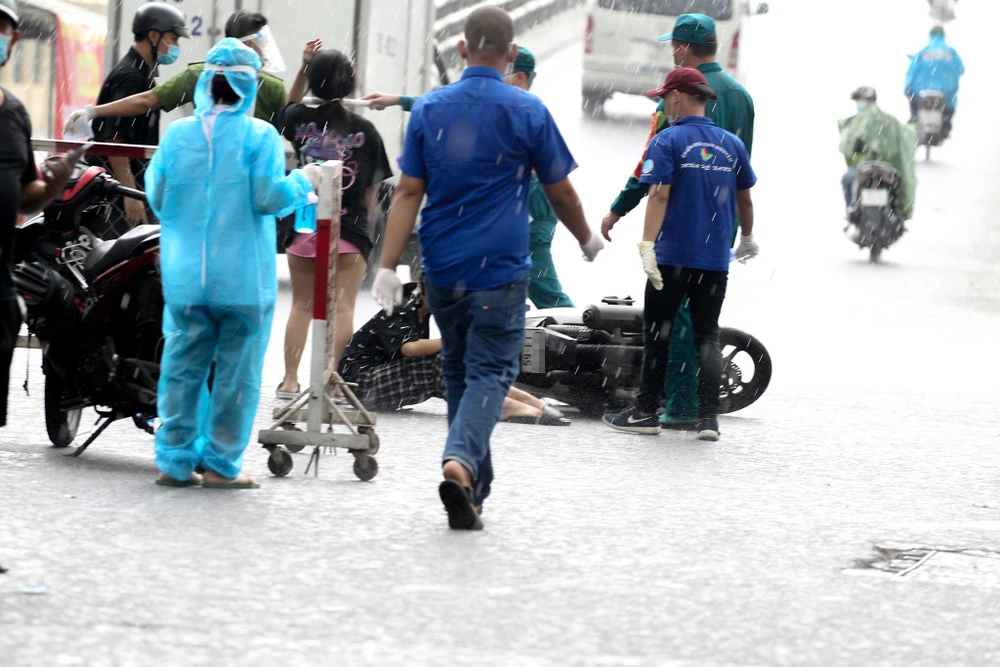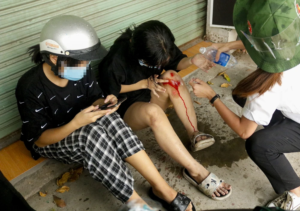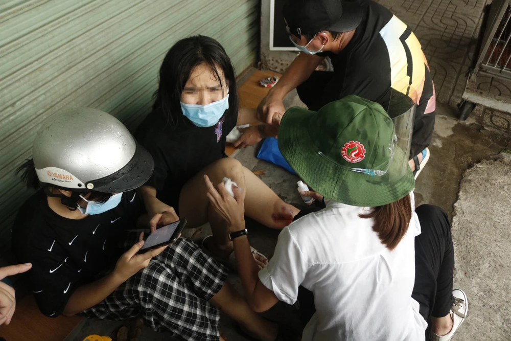 Cú mất lái làm cả ba té ngã nhẹ, riêng em NHTT bị thương ở chân. Ngay sau đó, các tình nguyện viên ở chốt kiểm dịch đã mua băng bông, thuốc đỏ để rửa vết thương và cầm máu cho em này. Tình nguyện viên cũng gọi điện cho gia đình hai em để thông báo tình trạng và đưa hai em về nhà. Riêng nam thanh niên thì được gọi điện để quay lại chốt kiểm dịch nhưng người này đã không nghe máy.
