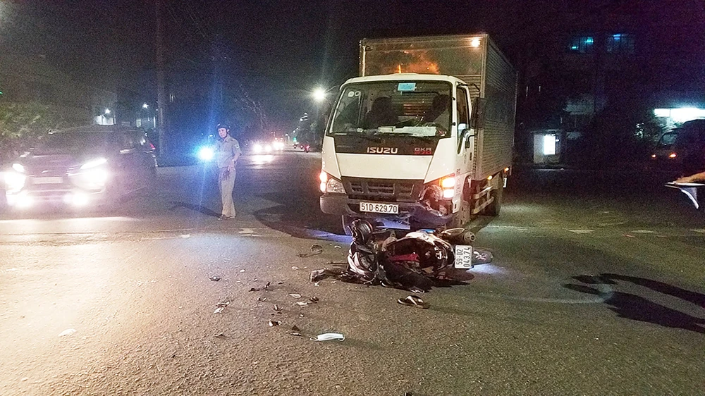 Đến 1 giờ sáng ngày 23-10, lực lượng chức năng quận Bình Tân, TP.HCM hoàn tất công tác khám nghiệm hiện trường, điều tra vụ tai nạn giữa xe máy và xe tải trên địa bàn.