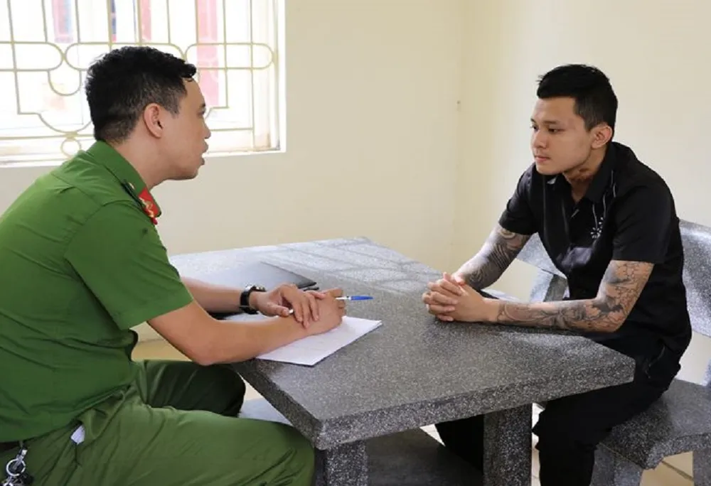 Mai Hữu Tùng làm việc với cơ quan điều tra. (Ảnh do Công an Vĩnh Phúc cung cấp)