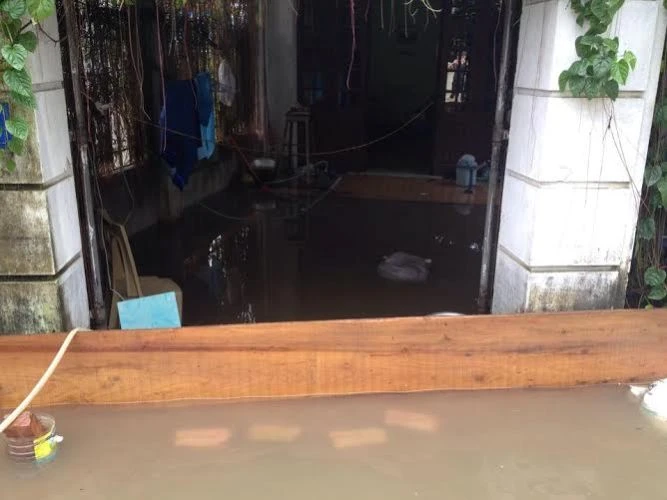 Một người dân ngăn nước tràn vào nhà mà vẫn không hiệu quả