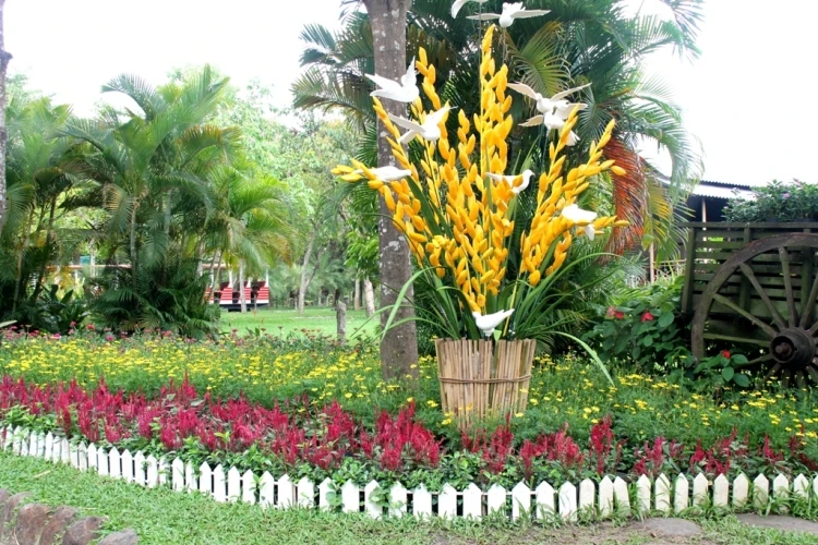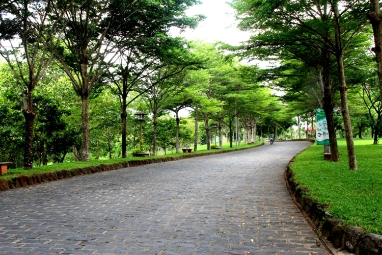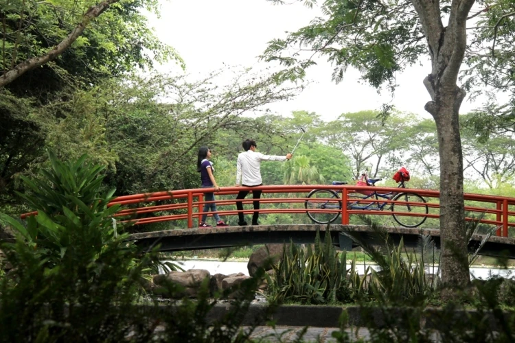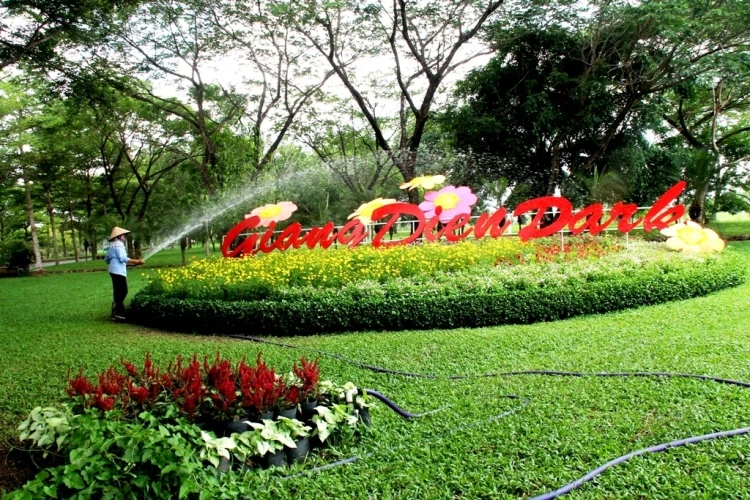 Những hàng cây bàng xanh tươi, cỏ hoa đua sắc rất nên thơ. Bên hồ nước trong xanh với những cây cầu nhỏ xinh, các thanh niên nam nữ đua nhau chụp ảnh kỷ niệm.