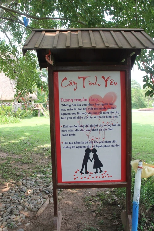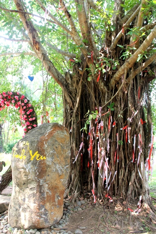 Trong khuôn viên khu du lịch còn có một điểm đến lý thú đó là “Cây tình yêu”, nơi những người yêu nhau ghi ước nguyện của mình và treo nó lên tán cây xanh um như một lời cầu phước.