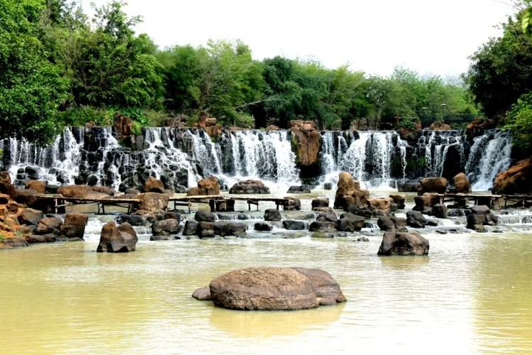 Nằm trong khu du lịch sinh thái với tổng diện tích gần 200 ha, nơi đây vừa có thác vừa có suối chảy róc rách, xanh mát.