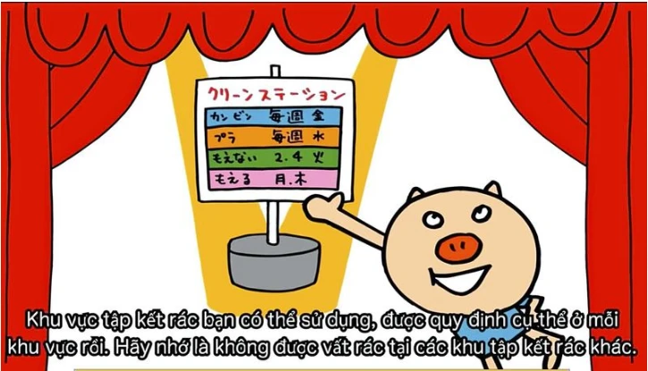 Ảnh cắt từ video clip về phân loại và loại bỏ rác bằng tiếng Việt của chính quyền Kobe. Ảnh: THE JAPAN NEWS
