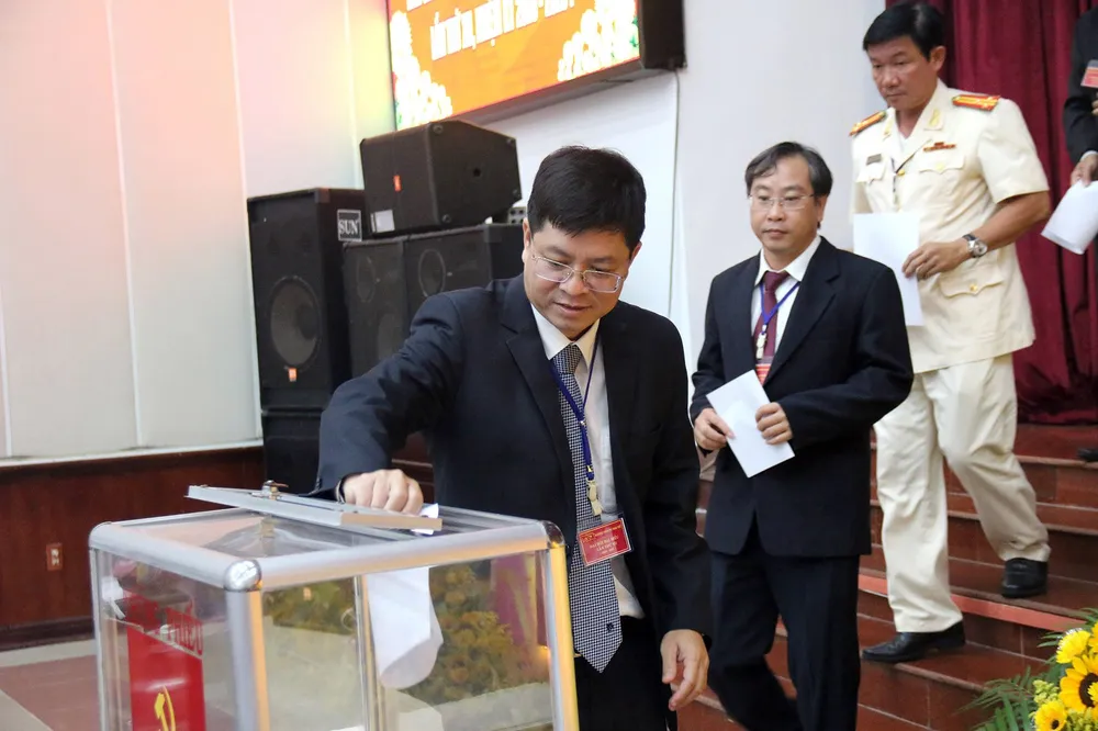 Ông Nguyễn Hồng Hải (người bỏ phiếu) vừa được bầu làm Bí thư Thành ủy Phan Thiết. Ảnh: PN