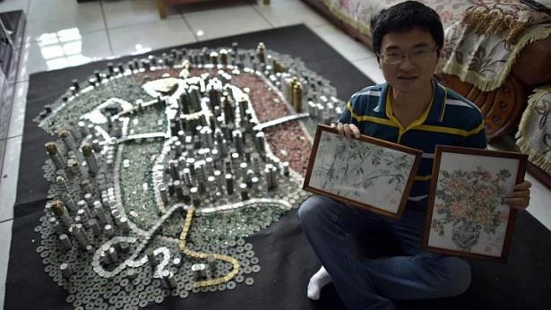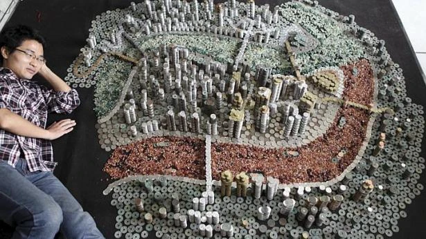 Để làm nên mô hình đặc biêt này, anh He Peoqi dành ra 2 giờ mỗi ngày trong vòng một tháng, xếp chồng 50.000 đồng xu này mà không sử dụng keo dán. Truyền thông Trung Quốc dẫn lời tác giả 30 tuổi cho hay, anh đã sử dụng tới 11 loại đồng xu.