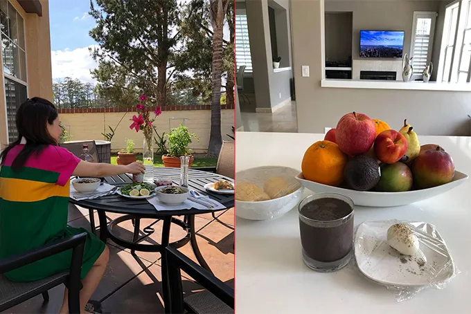 Thanh Thảo và con trai nuôi là con của em gái và ca sĩ Ngô Kiến Huy khi ở nhà tại Mỹ.