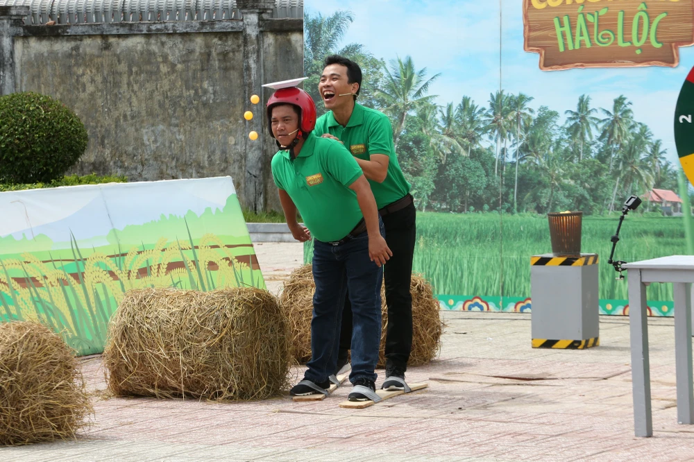 Thấy vậy, MC Hiếu Hiền chỉ ra rằng các anh nông dân của đội Thanh Trúc không chỉ là đại gia đất mà còn là đại gia ruộng và đại gia gạo khiến cho nữ diễn viên choáng ngợp.