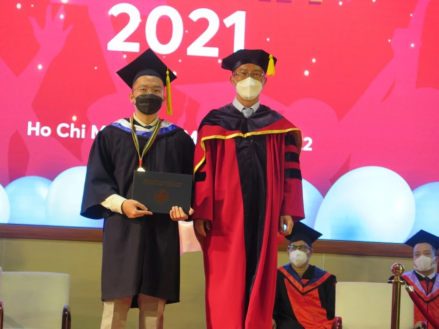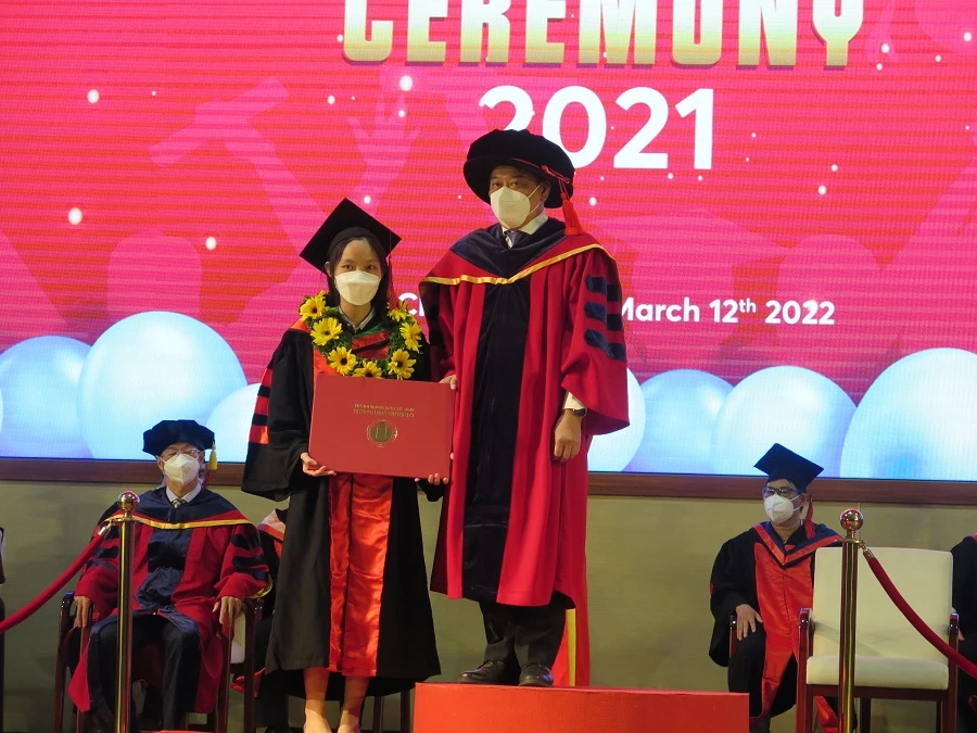 Trong số học viên tốt nghiệp năm nay, trường vinh danh hai thủ khoa là Ngô Nguyễn Tiến Đạt với 92.6/100 điểm (khối ngành Kỹ thuật) và Lê Hồ Ngọc Dung 84.6/100 điểm (khối ngành Kinh tế).