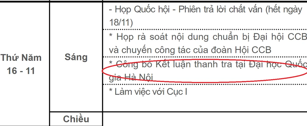 Lịch công bố kết luận thanh tra đối với ĐHQG Hà Nội của Thanh tra Chính phủ.
