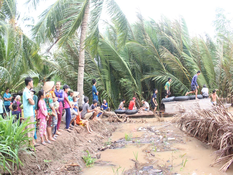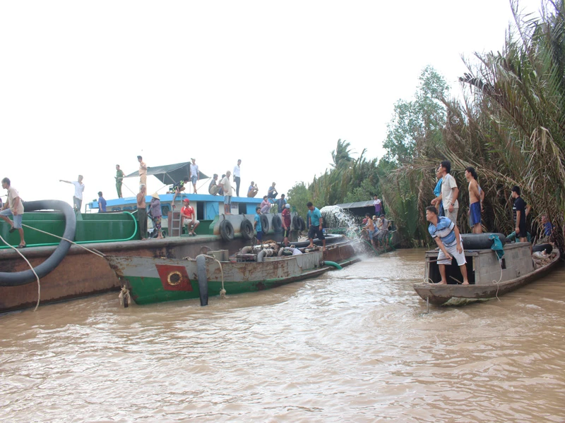 Người dân huyện xã Thạnh Phú Đông, huyện Giồng Trôm (Bến Tre) từng kéo ra sông Hàm Luông phản đối việc khai thác cát gây sạt lở. Ảnh: ĐH