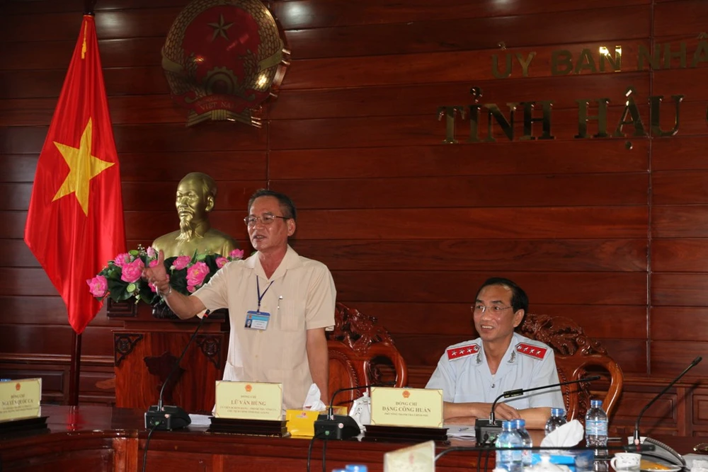 Chủ tịch tỉnh Hậu Giang Lữ Văn Hùng thay mặt lãnh đạo tỉnh tiếp thu quyết định thanh tra. Ảnh: KHÁNH HOÀNG