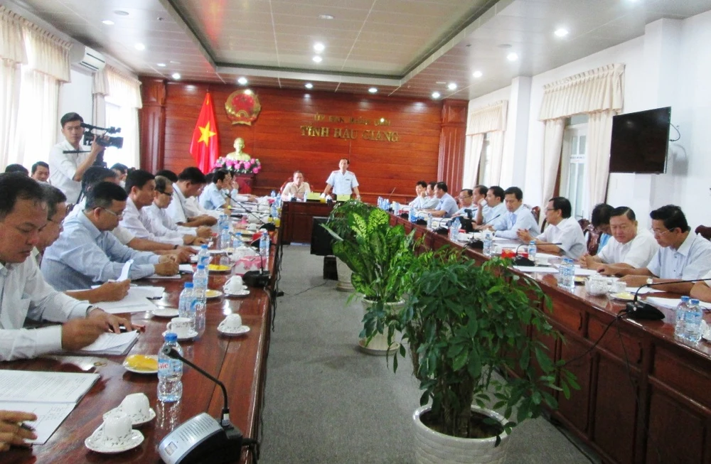 Quang cảnh họp công bố quyết định thanh tra tại Hậu Giang. Ảnh: KHÁNH HOÀNG