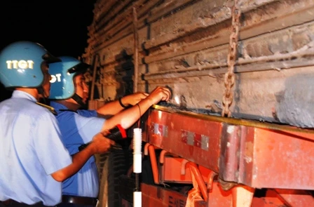 Lực lượng thanh tra giao thông Vĩnh Long trực chiến nguyên đêm để “canh” xe quá tải.