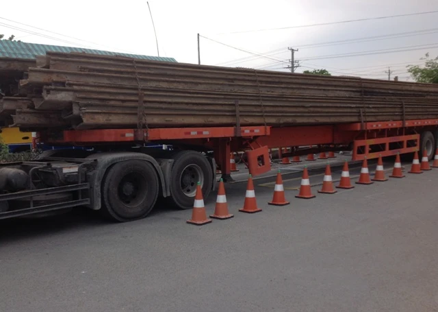 Trưa 24-5, xe đầu kéo (BKS 63C-034.89) nằm trong công trường thi công Trung tâm thương mại Lotte Mart Cần Thơ (số 84 Mậu Thân, phường An Hoà, quận Ninh Kiều, TP Cần Thơ) kéo theorơ-moocchở 50 thanh cừ larsen dài trên 18m.