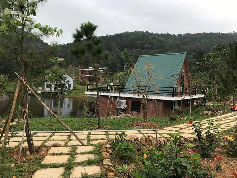 Tương tự, tại thôn Minh Tân, xã Minh Trí, tổ hợp Hoàng Lê Gia Garden (hộ bà Lê Thị Lan Hương) đã sử dụng khoảng 19.958m2 xây dựng 5 công trình kiên cố 2-3 tầng (dạng biệt thự), diện tích xây dựng khoảng 1.076m...