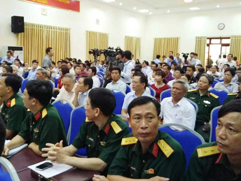 Nhiều người nghe dự thảo kết luận thanh tra đất đai tại khu vực sân bay Miếu Môn ngày 7-7. Ảnh: T.PHÚ
