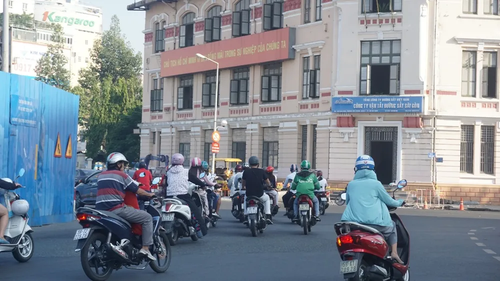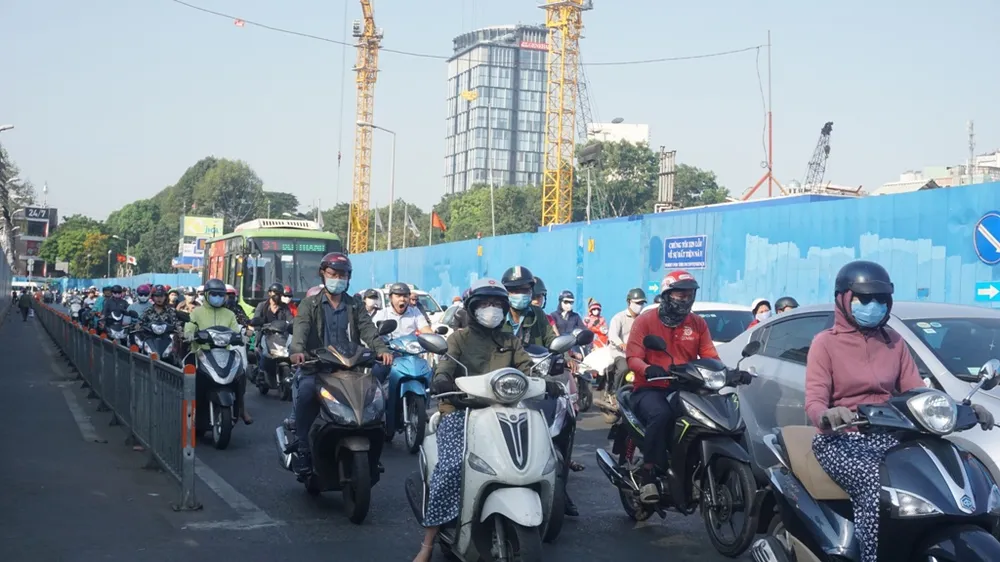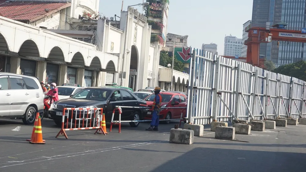 Lượng phương tiện đi qua khu vực rào chắn nhà ga Bến Thành đông đúc.