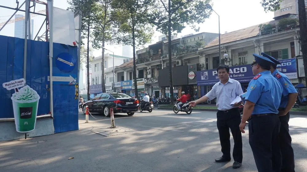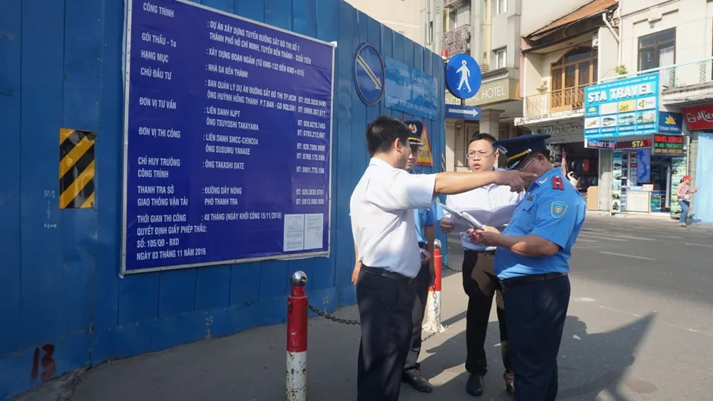 Cụ thể, tổ kiếm tra đã tiến hành kiểm tra thi công hàng rào, cải tạo và di dời các công trình tiện ích trên đường Trần Hưng Đạo phục vụ thi công gói thầu 1a (nhà ga Bến Thành) thuộc dự án xây dựng tuyến đường sắt đô thị Bến Thành - Suối Tiên.