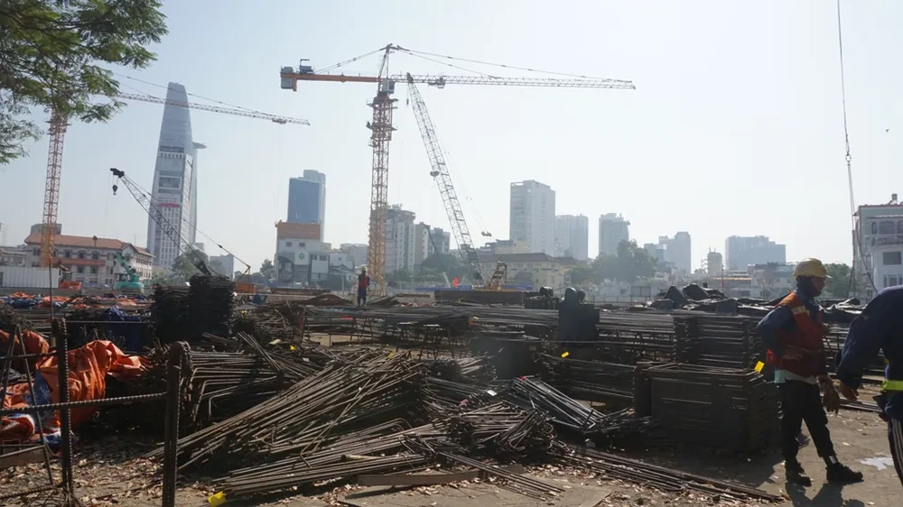 Công trường thi công nhà ga ngầm của tuyến metro số 1 (Bến Thành - Suối Tiên).