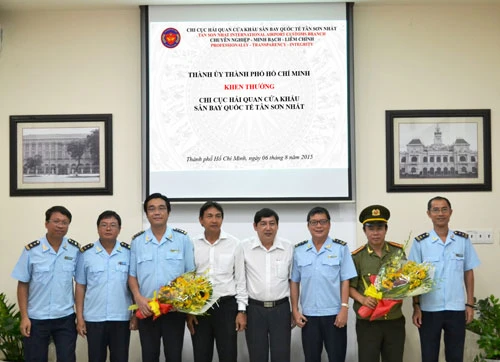 Thay mặt Thường trực Thành ủy, đồng chí Trần Thế Lưu - Ủy viên Ban Thường vụ, Trưởng Ban Nội chính Thành ủy đã biểu dương và thưởng nóng cho Chi cục Hải quan sân bay Tân Sơn Nhất và Cục An ninh Kinh tế Tổng hợp (A85) – Bộ Công an.
