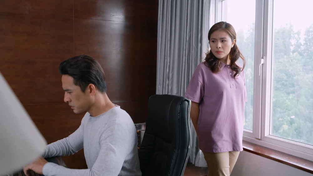 Thanh Vân liên tục theo dỏi từng hàng động của Đăng Duy. Ảnh: SEN VÀNG