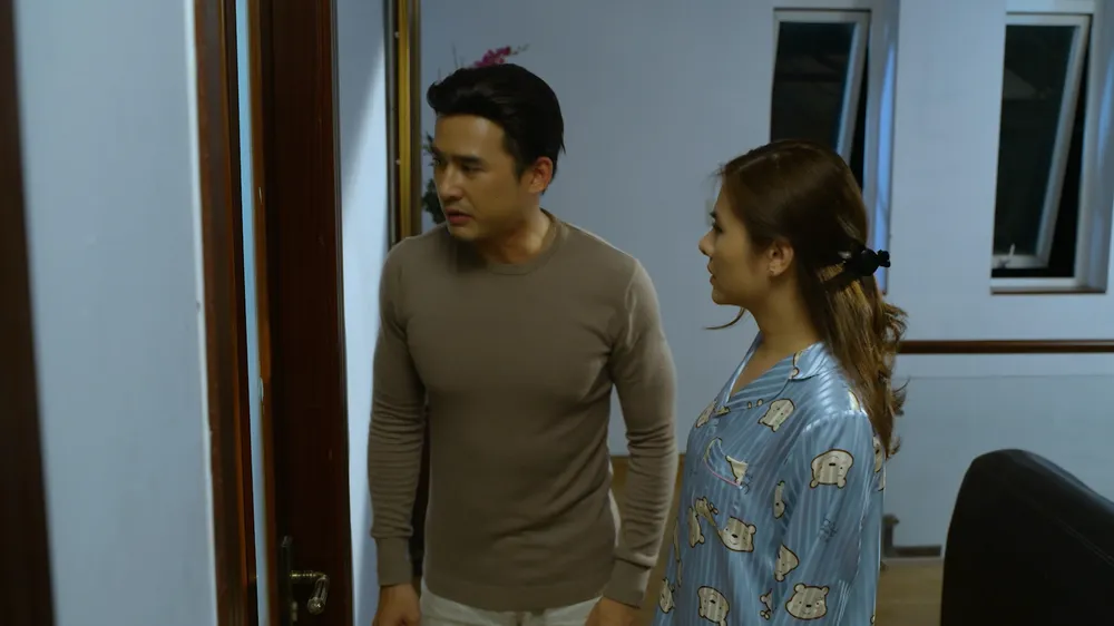 Đăng Duy lo lắng khi Mỹ Ngọc đóng cửa tự nhốt mình trong phòng. Ảnh: SEN VÀNG