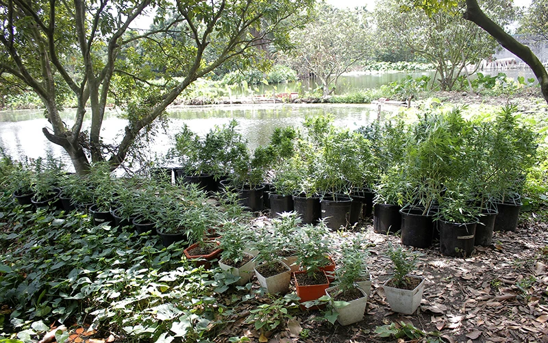 Cần sa được trồng trong vườn xen lẫn các loại cây khác. Ảnh: ĐH