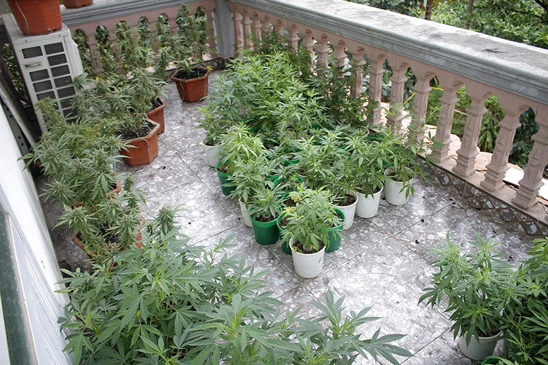 Cây cần sa được trồng trong chậu trên tầng 2 căn nhà của Hiếu. Ảnh: ĐH