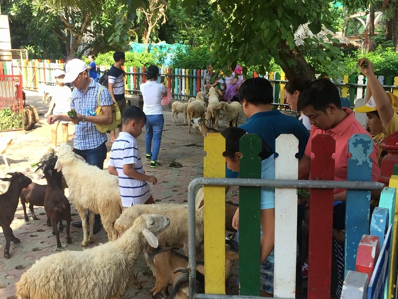 Những thú nuôi nhốt như dê, hồng hạc, voi... thu hút khá nhiều người tham quan.