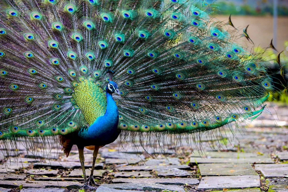 Một chú công tại Thảo Cầm Viên Sài Gòn thường xuyên xòe đuôi, tương tác với khách tham quan. Những loài động vật tại đây đa phần đều đã quen với bóng dáng con người.